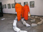 Another world is not only possible. She is on her way. Maybe many of us won’t be here to greet her. But on a quiet day if I listen very carefully I can hear her breathing.’ These words by Arundhati Roy inspired the exhibition which was shown at CAB 2009 at the close of the thirty year war. Aspects that touch on collateral damage, on Internally Displaced Persons returning home, and reflections on the complex forms of human interaction are explored through seven related collections. Video, digital, mixed media and sculptural installations explore fear as the base of inhumanity and intolerance, and the need to change our own selves if we want to make a change in our surroundings. It suggests that the end of war is not peace – it is just the beginning of the long road to win a lasting and sustained peace through forgiveness and reconciliation.